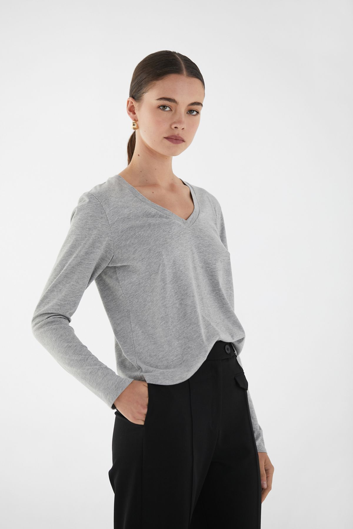 Remera escote en V, confeccionada en 100% algodón pima peruano