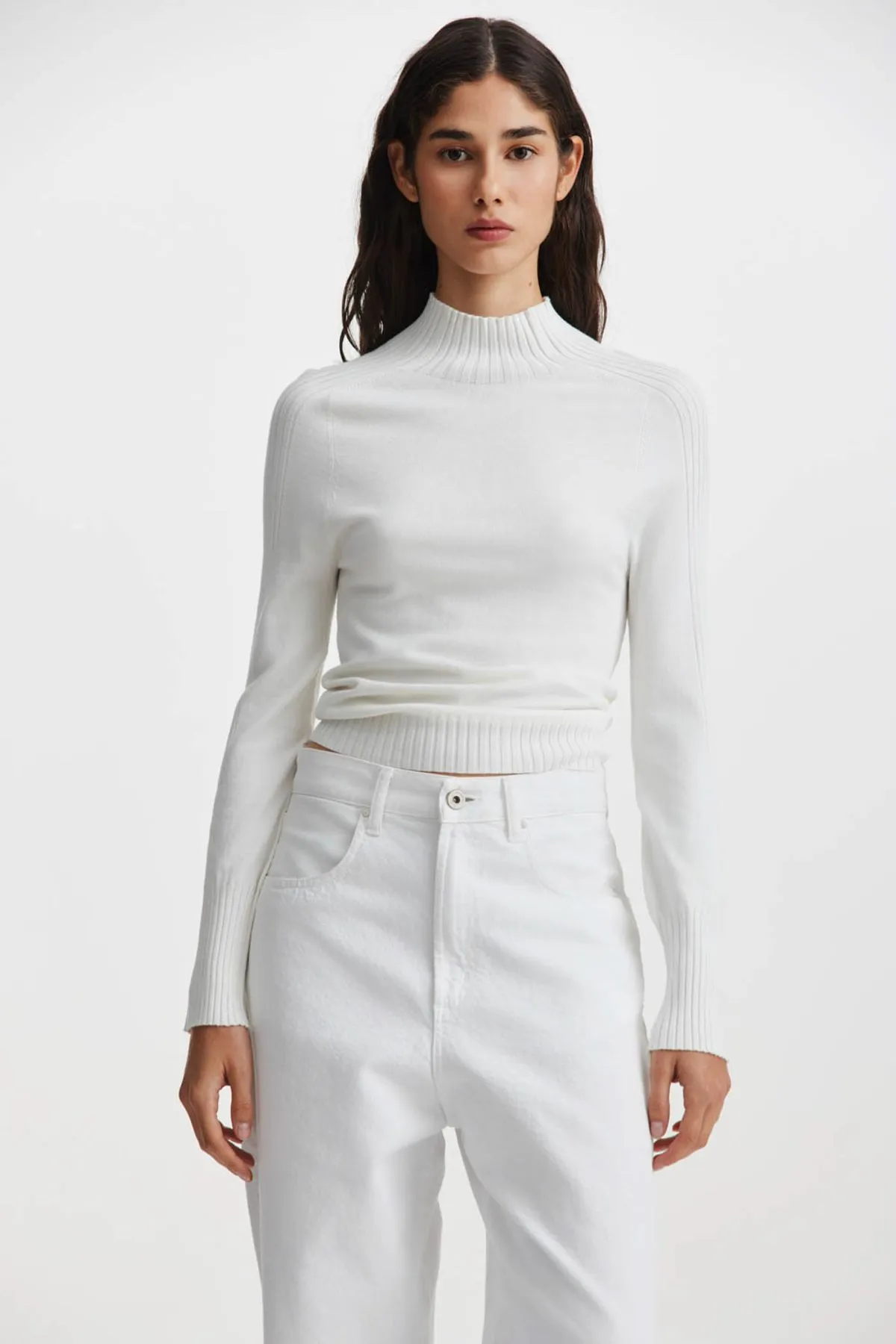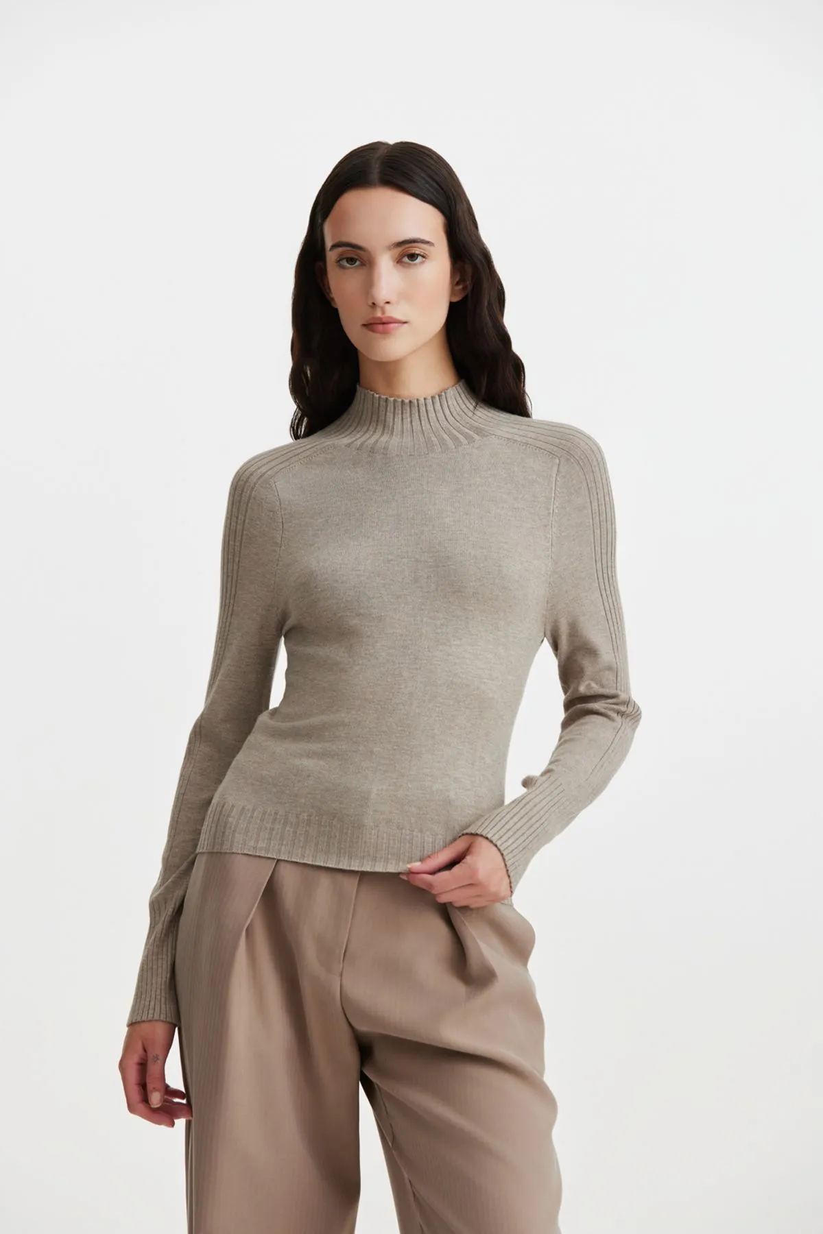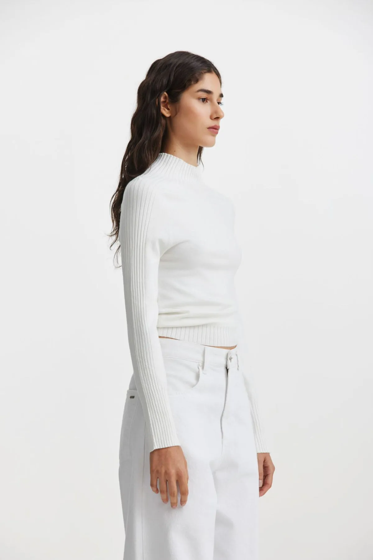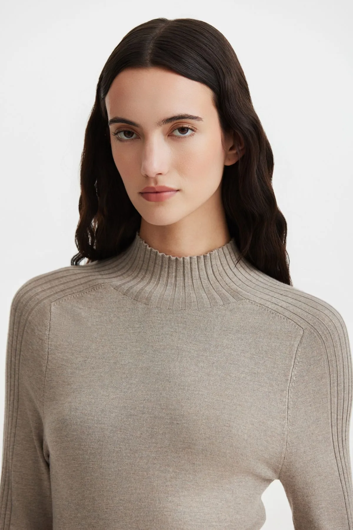 Detalle de canelado menguado en mangas que sigue hasta el cuello