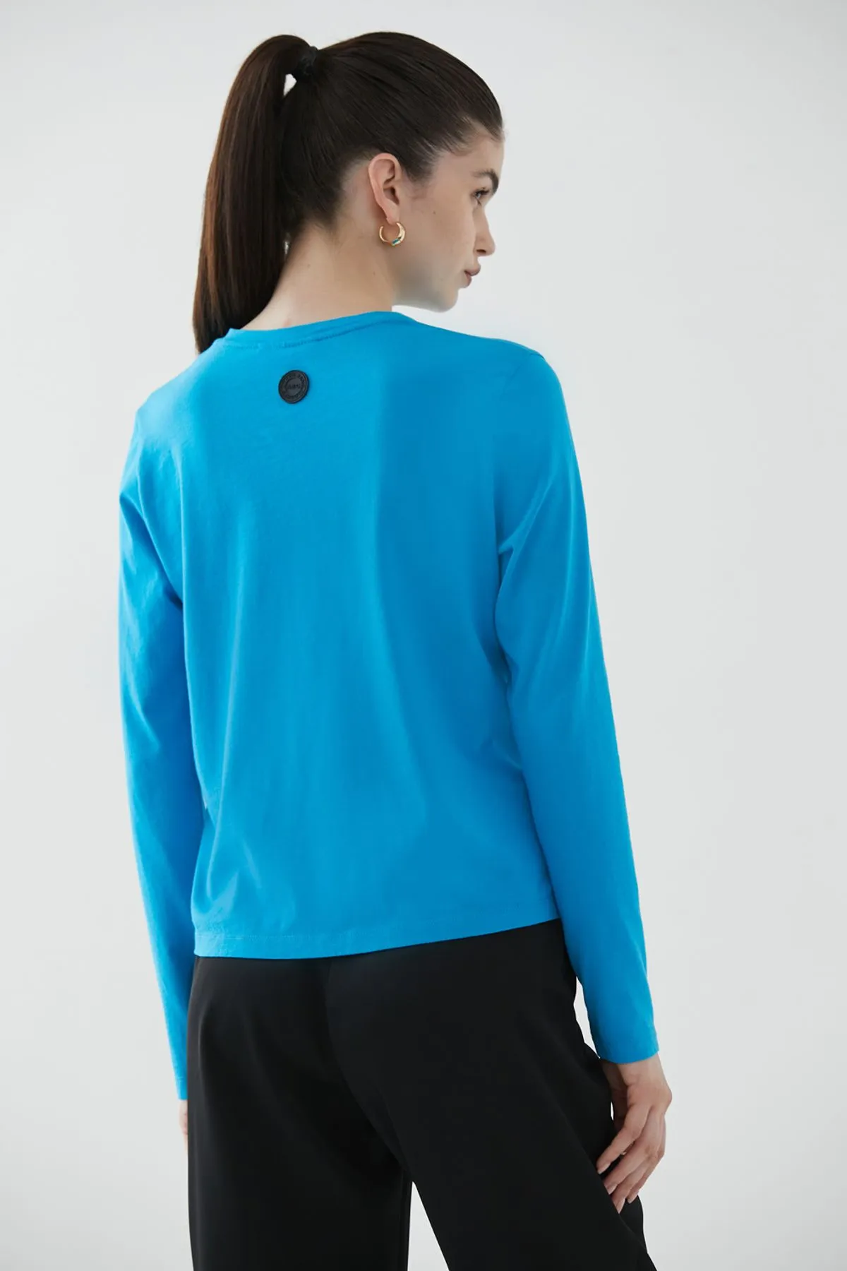 Remera confeccionada en algodón 100% pima peruano con detalle de etiqueta de goma pvc en espalda.