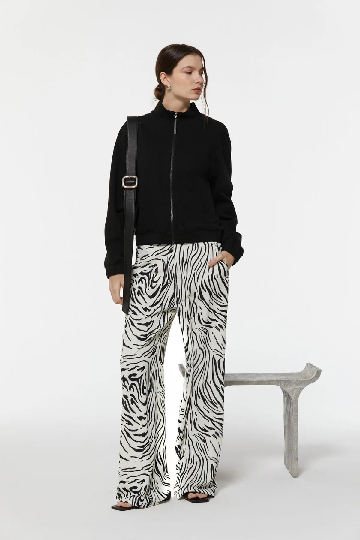 Pantalón recto estampado con bolsillos laterales y broche soft touch.