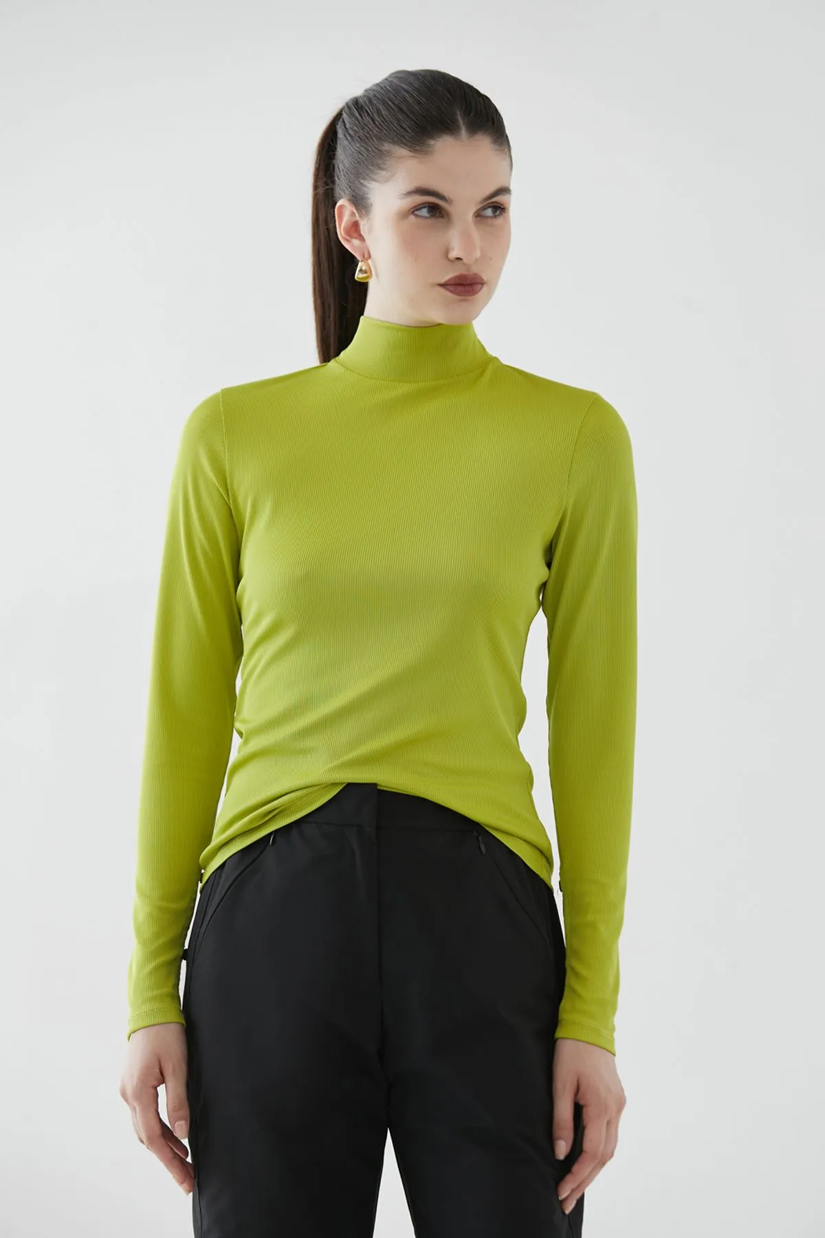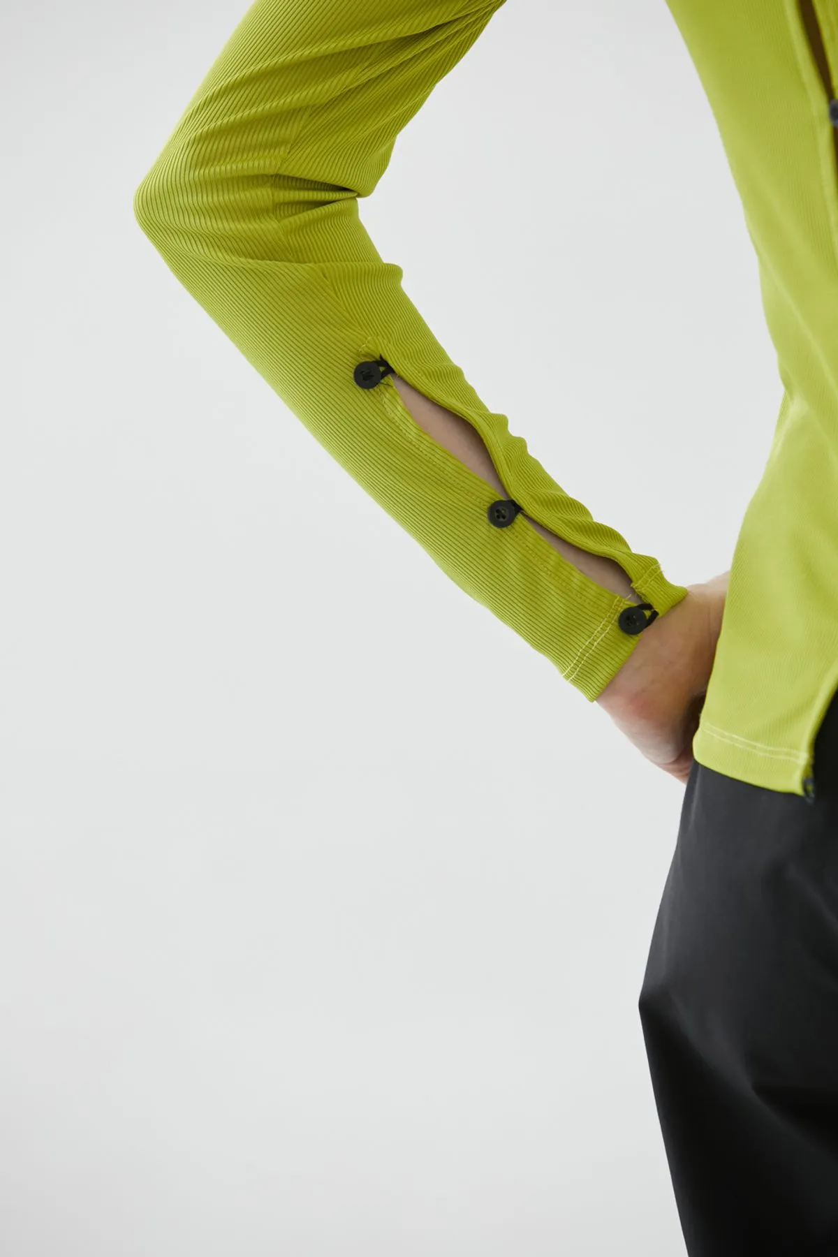 Polera confeccionado en morley satinado. Detalle de abertura en espalda y mangas mediante cartera curva con botones soft touch.