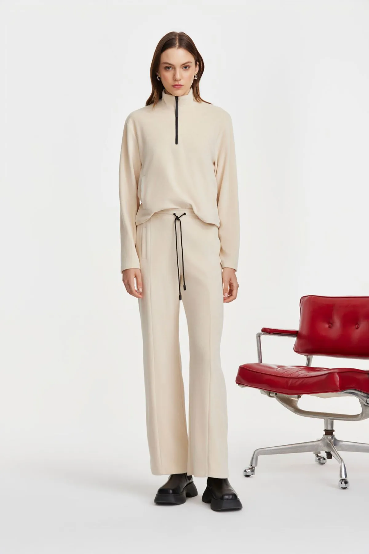 Buzo confeccionado en plush de algodón 100% con detalle de cierre vislon con tiracierre y cuello polera