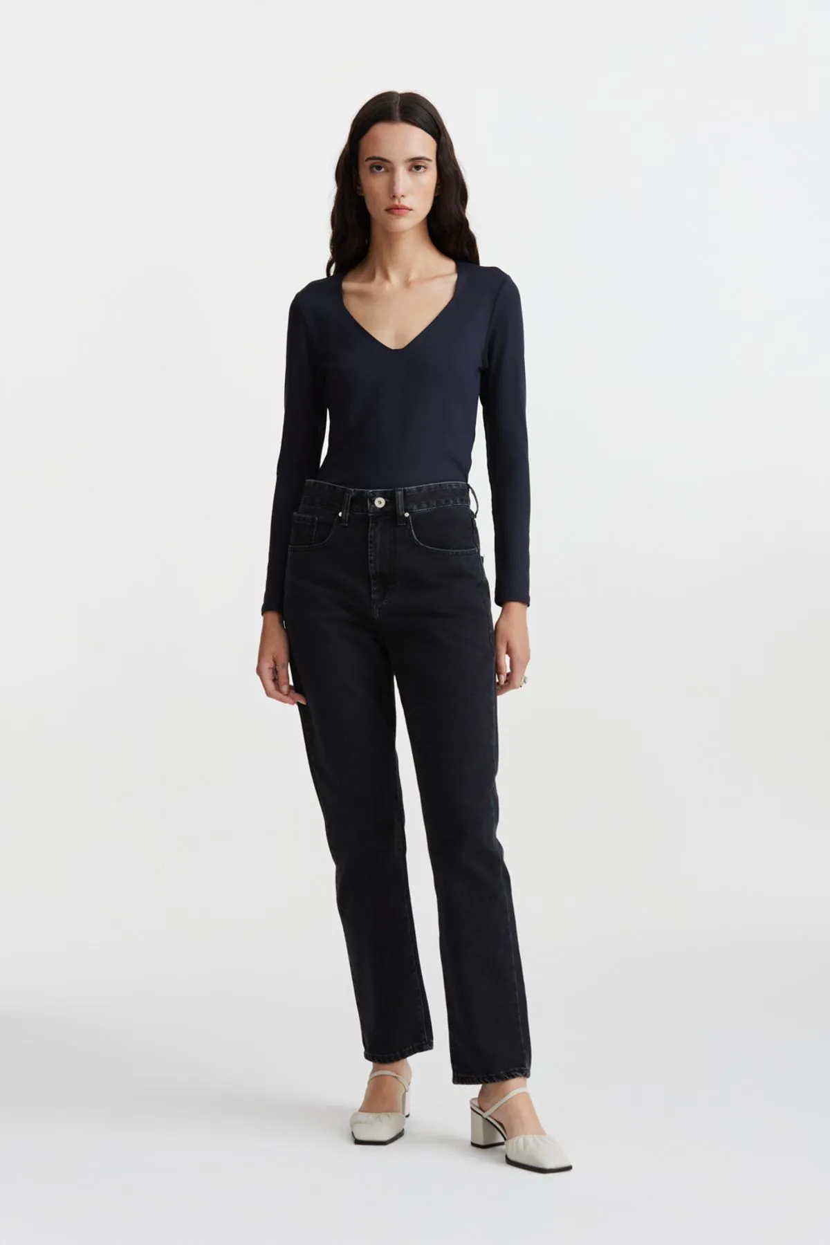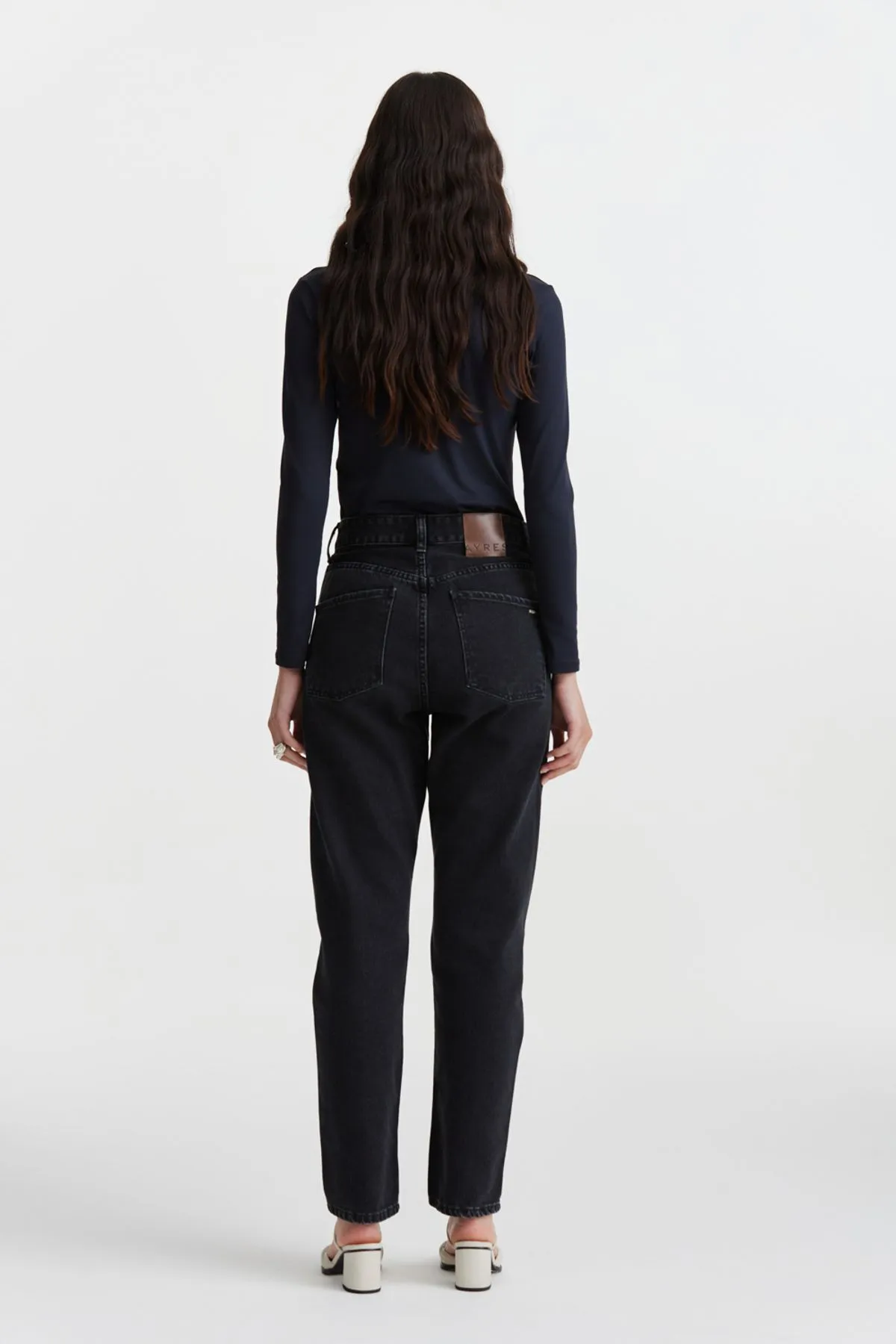 Mom confeccionado en denim 100% algodónDetalle de botones y remaches personalizados metálicos níquel y badana de cuero color chocolate