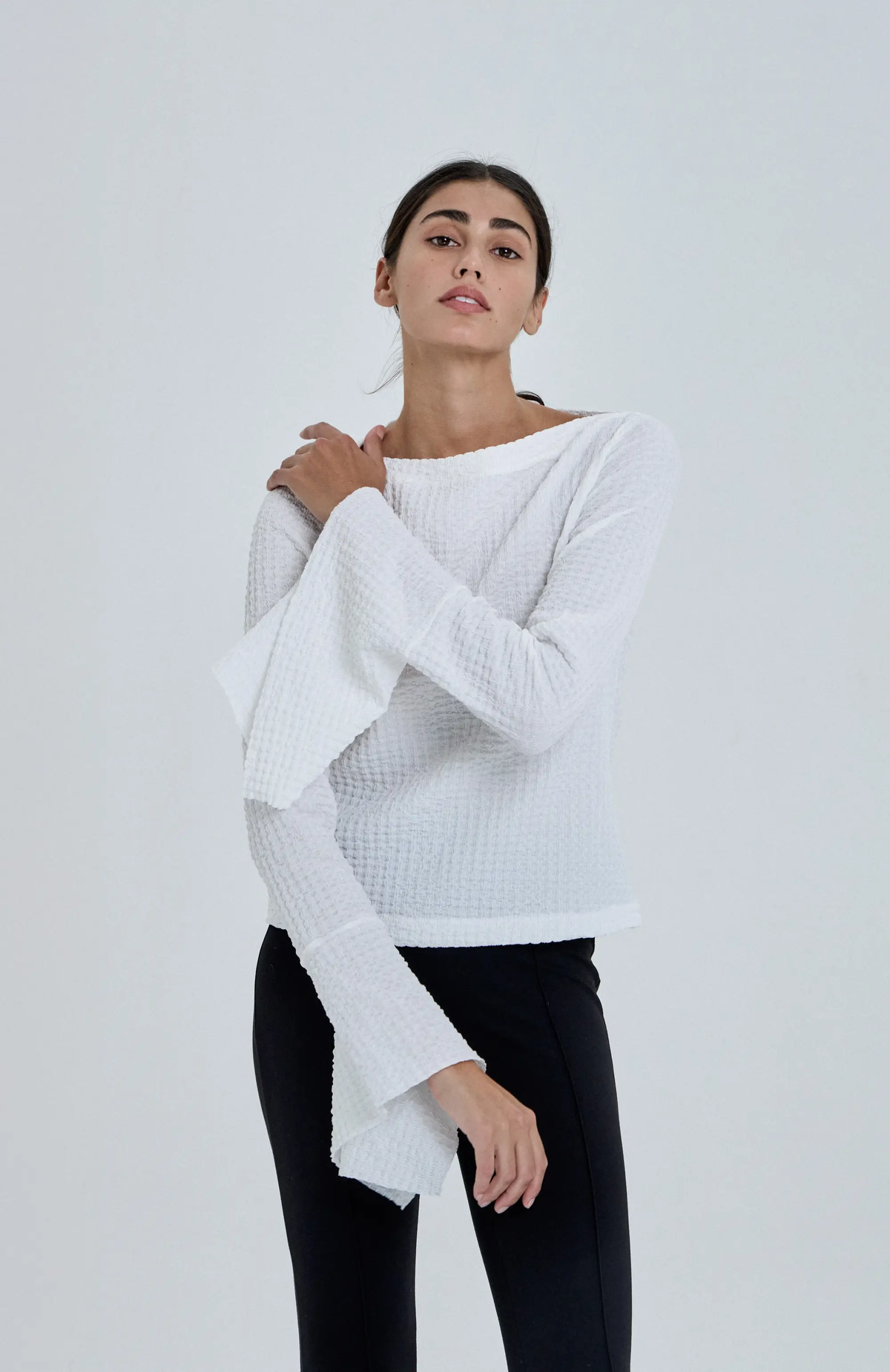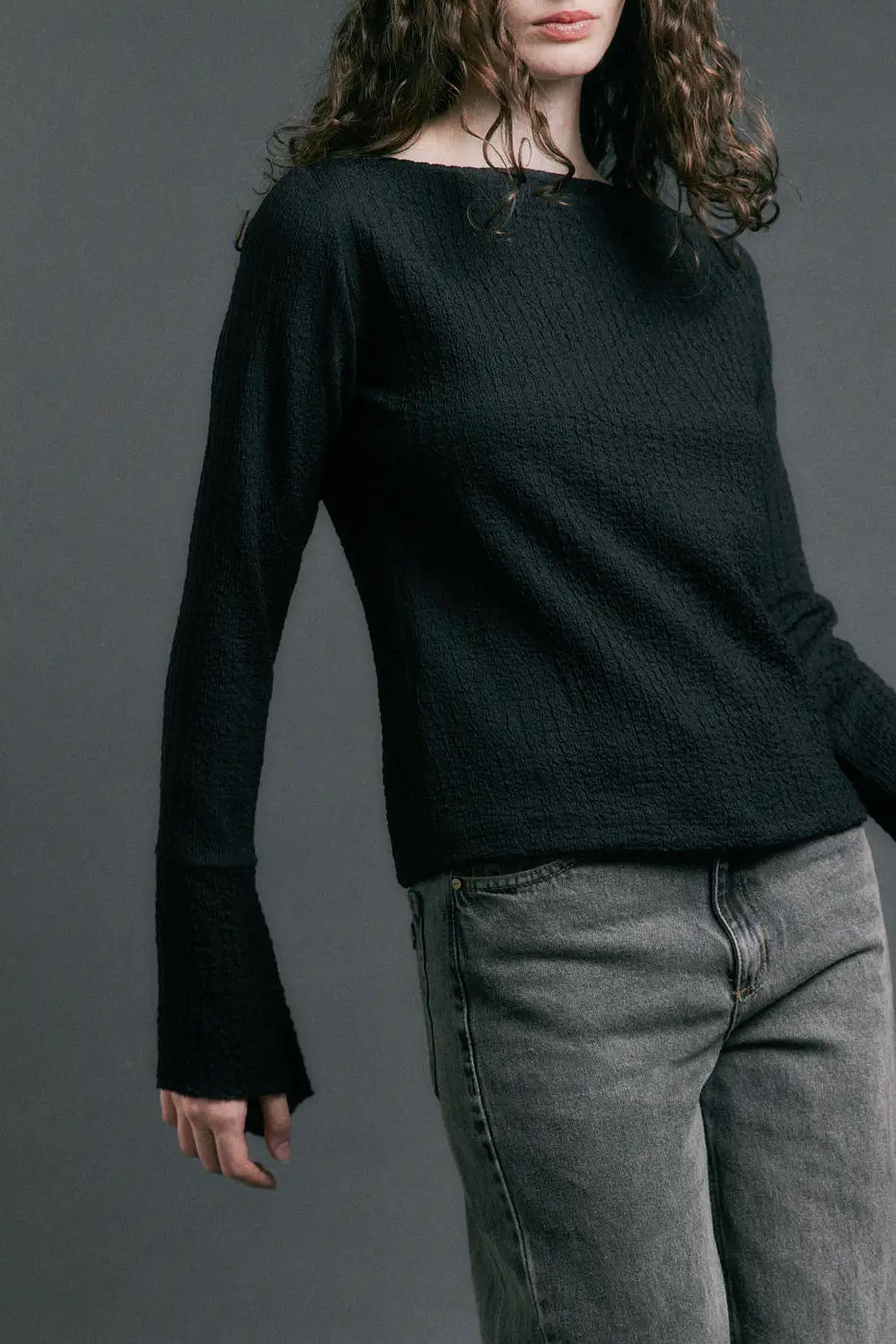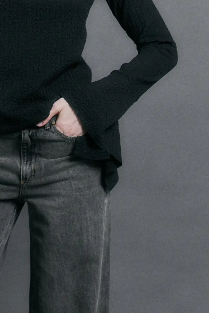 y mangas regulares. Esta prenda tiene los puños irregulares que generan