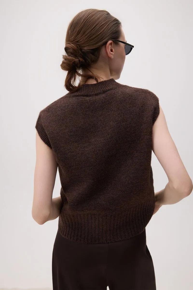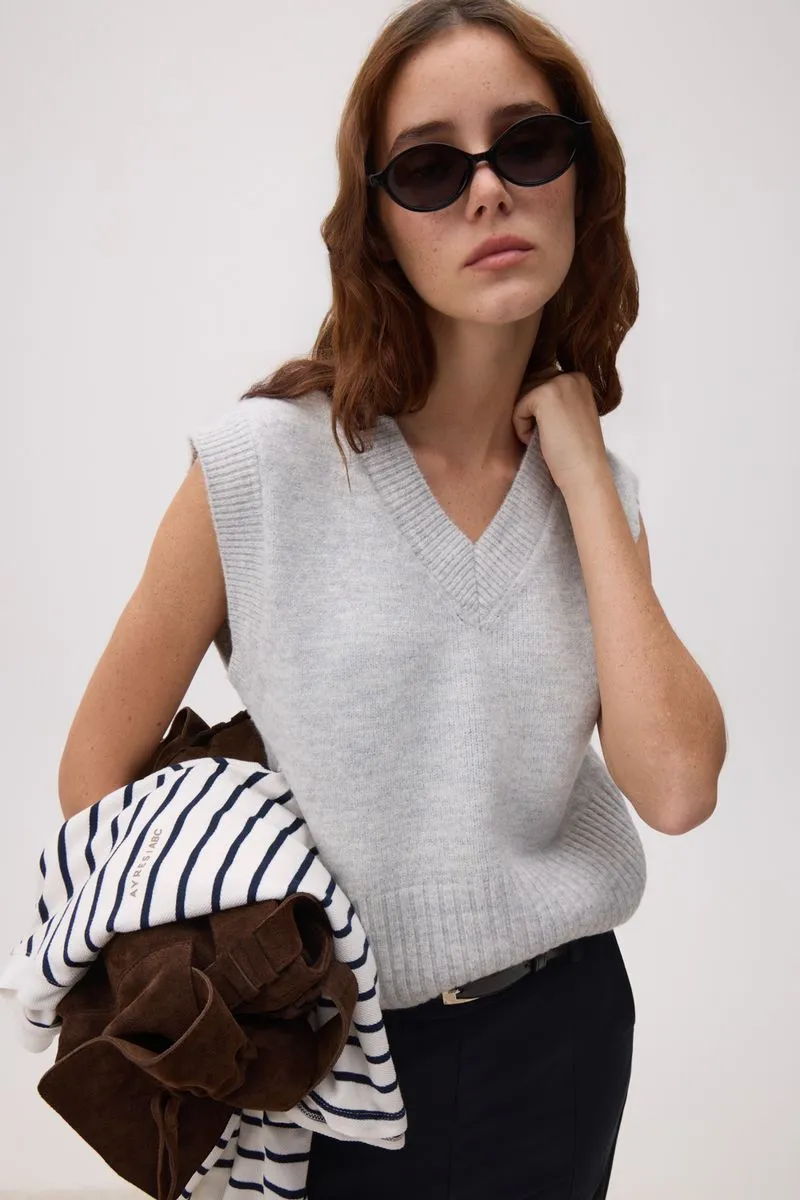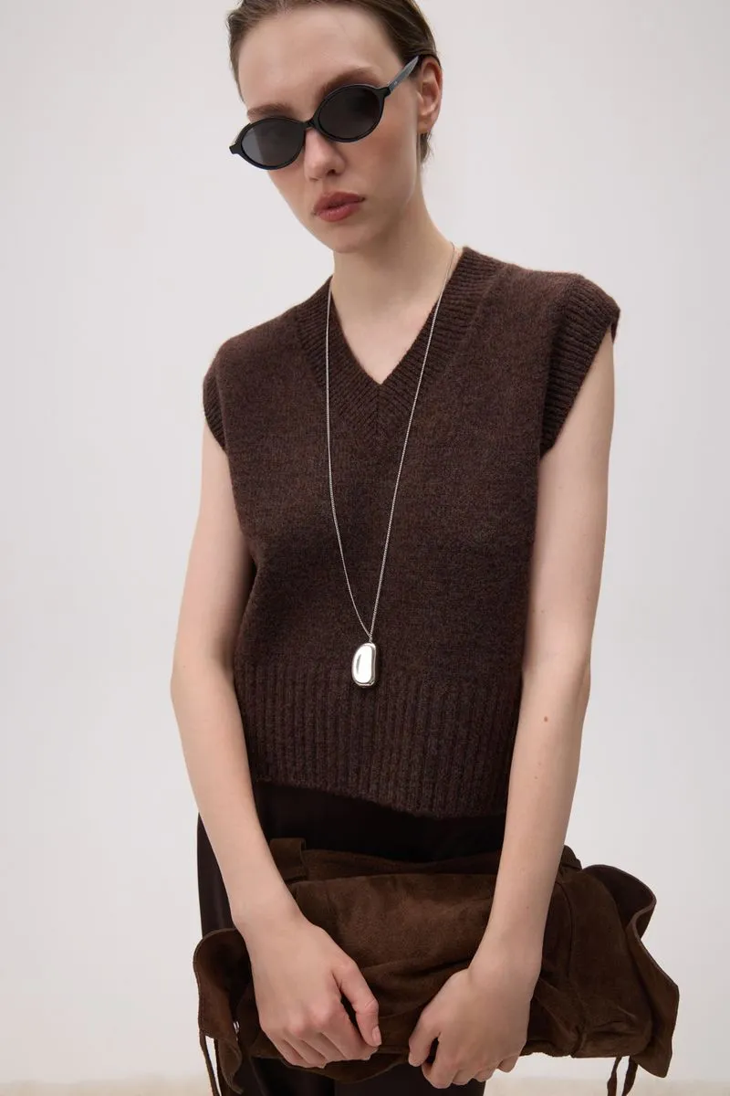 Chaleco escote en v, tejido en jersey con detalle de puños en morley.